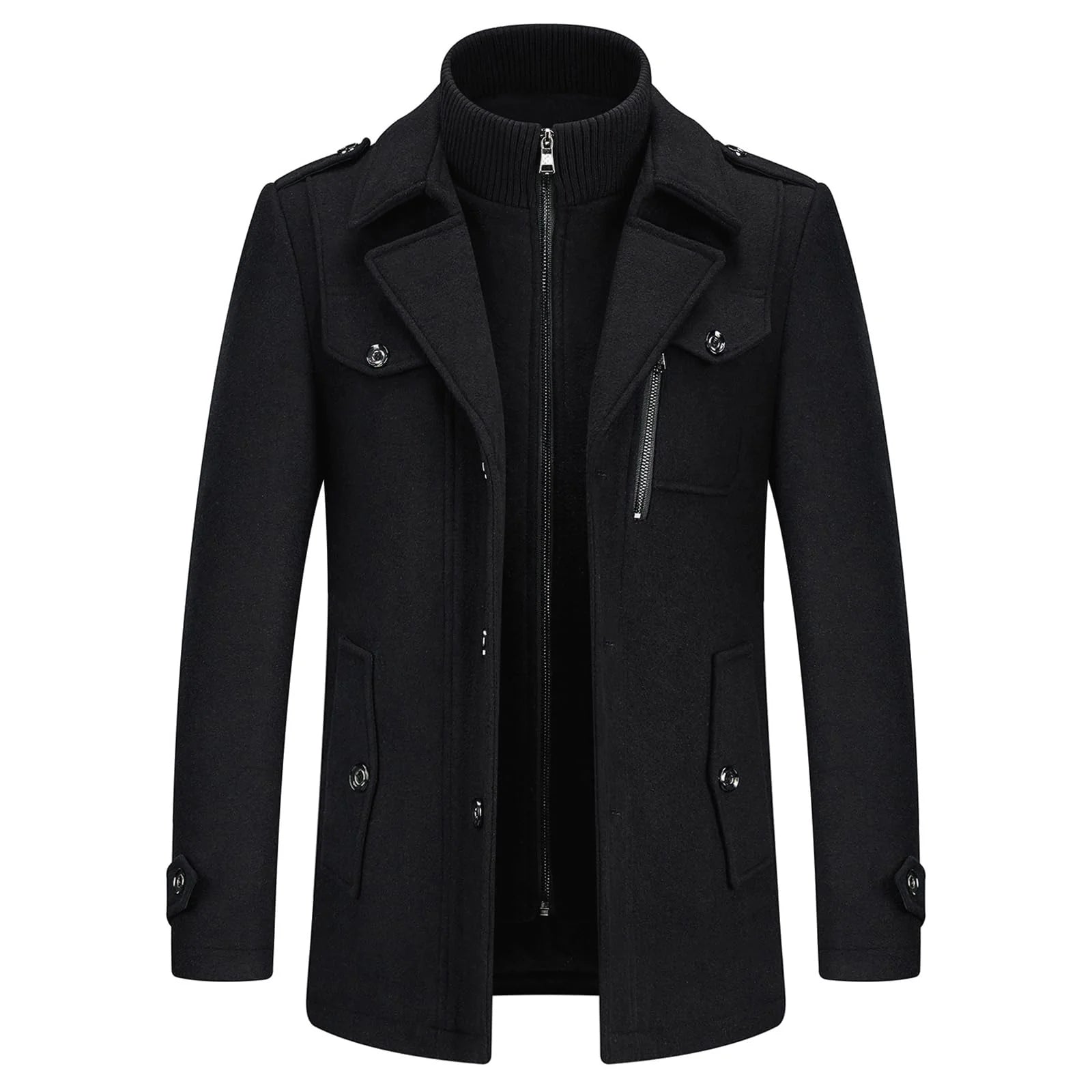 Men's Winter Thick Double-Layer Collar Wool Blend Coat