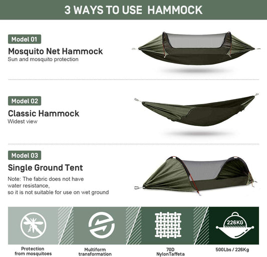 Camping Hammock with Mosquito Net 2 Person Pop-up Parachute Lightweight Hanging Hammocks Tree Straps Swing Hammock Bed