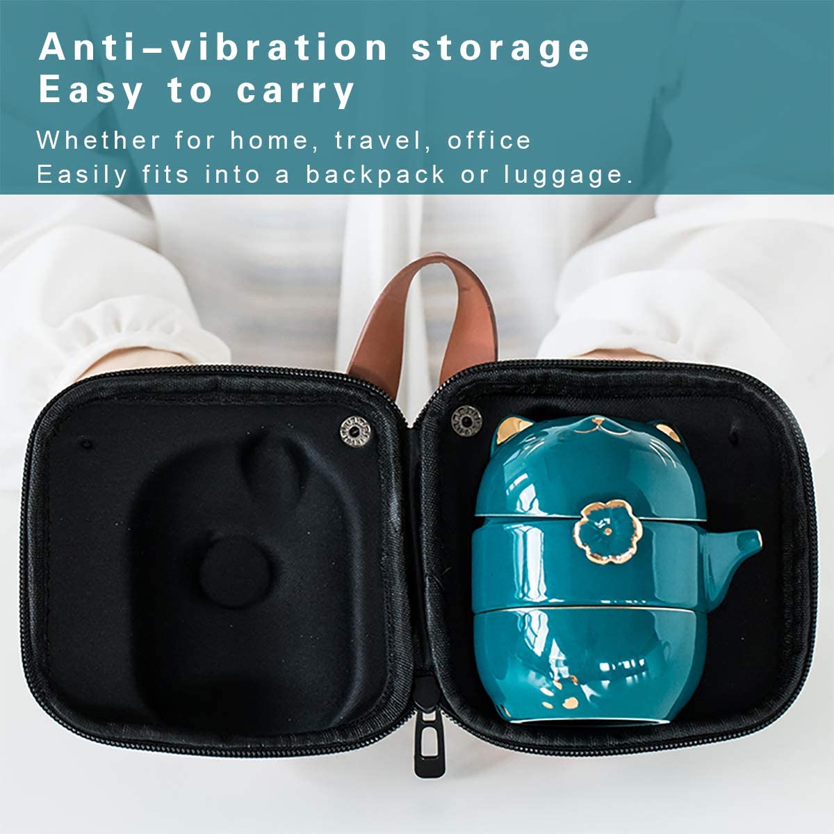 Portable Ceramic Tea Cup Set: Lucky Cat Porcelain Teapot Set with Tea Strainer - Lids and 1 Shockproof Storage Case