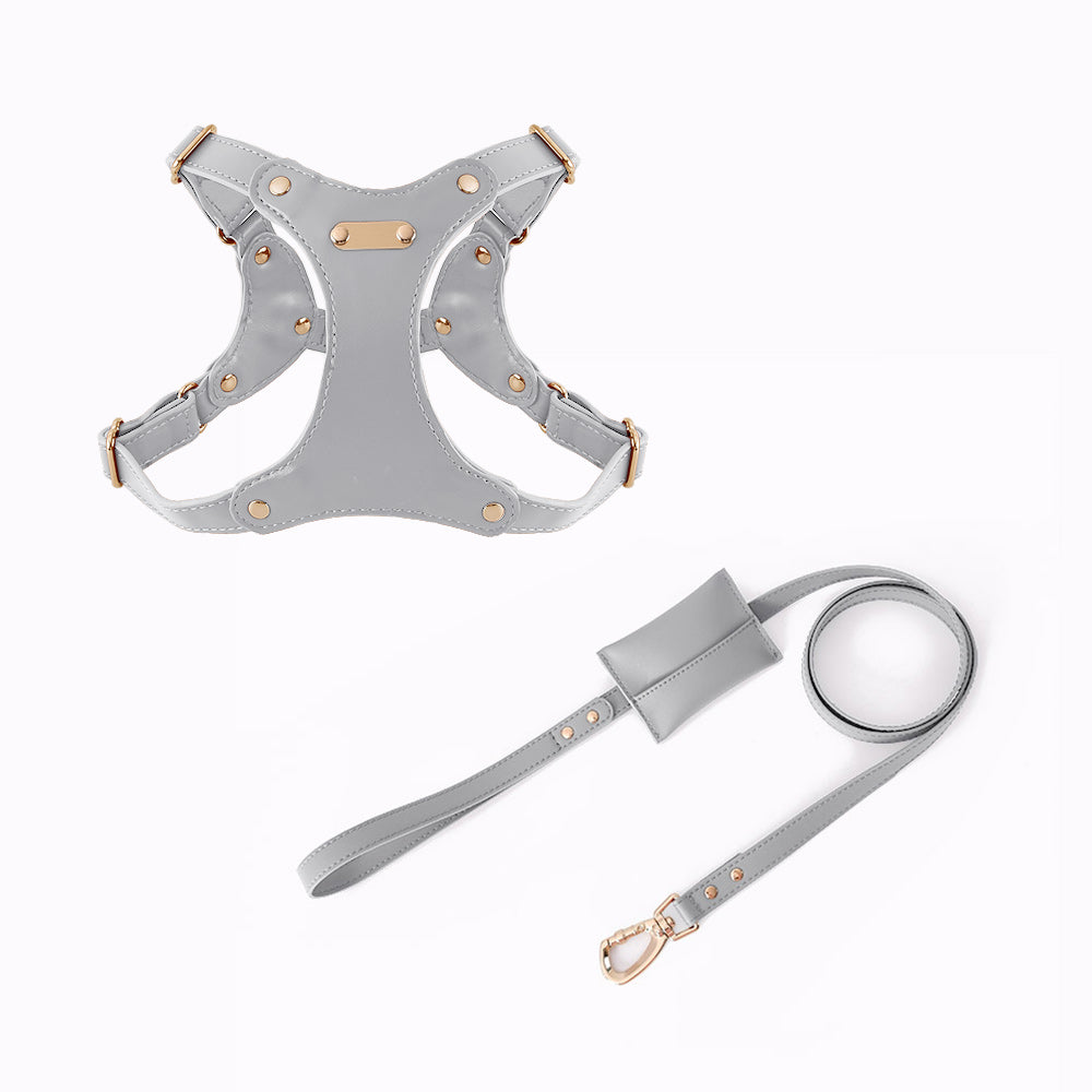 Small Medium Dog Harness Leash Set Luxury Waterproof Leather Pet Harness Set
